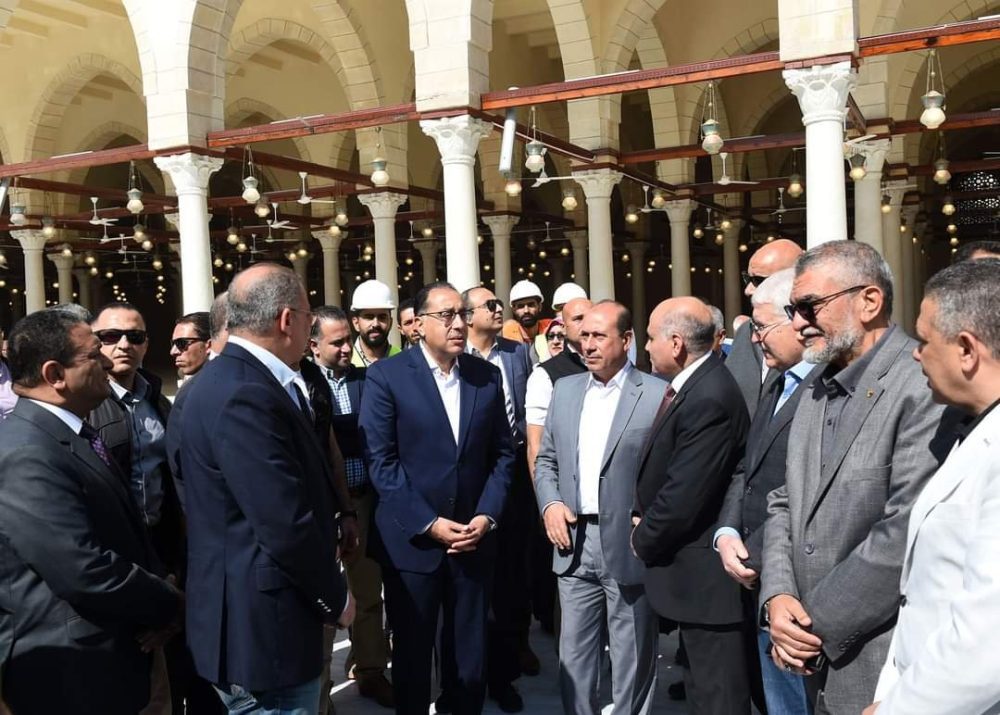كما قام رئيس الوزراء بدخول مسجد جامع عمرو بن العاص لتفقد أعمال الترميم ورفع الكفاءة، التي انتهت منها شركة “المقاولون العرب”، حيث استمع إلى شرح من المهندس سيد فاروق، رئيس مجلس إدارة الشركة عن الأعمال، مشيراً إلى أنه يتم حالياً التأكد من كفاءة الإضاءة بالمسجد، والإذاعات الداخلية، تمهيداً لفرش المسجد، استعداداً لشهر رمضان الكريم، وتجول “مدبولي” داخل المسجد، مشيداً بأعمال الترميم التي تمت بأعلى كفاءة.