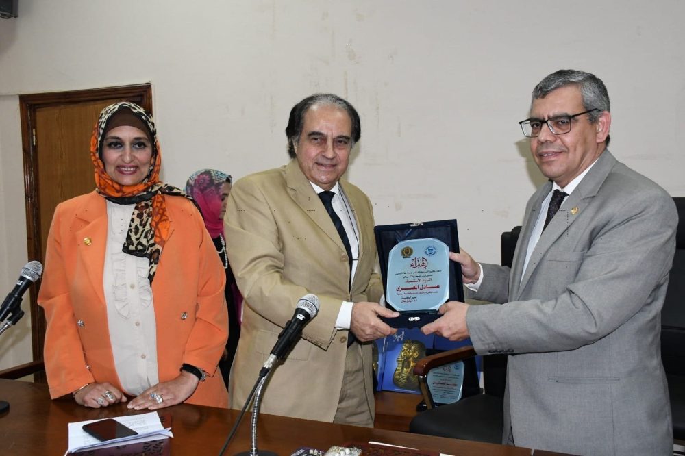 وعقب إلقاء كلمته قام الدكتور محمد سعد زغلول نائب رئيس الجامعة لشئون الدراسات العليا والبحوث، و الدكتورة نيفين جلال عيد ، عميد كلية السياحة والفنادق جامعة قناة السويس ، بتكريم عادل المصرى ، رئيس لجنة تسيير أعمال غرفة المنشآت والمطاعم السياحية ،وإهداءه درع الكلية تقديراً لمجهوداته فى دعم السياحة ، والتعليم السياحى.