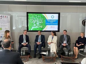 شارك المهندس طارق الملا وزير البترول والثروة المعدنية كمتحدث رئيسى فى جلسة حوارية بعنوان “مسارات الهيدروجين” ضمن فعاليات البعثة المصرية للترويج للاستثمار الأخضر فى العاصمة البريطانية لندن، وضمت الجلسة كلاً من جين توجود الراعى الاستراتيجى الحكومى لاقتصاد الهيدروجين فى المملكة المتحدة والرئيس التنفيذى لقطاع التقنيات المساعدة بشركة جونسون ماتى، وتيرييه بيلسكوج الرئيس التنفيذى لشركة سكاتك النرويجية، وآنيا إيزابيل نائب الرئيس التنفيذى للغاز والطاقة منخفضة الكربون فى شركة بى بى، ومايك سكولي الرئيس التنفيذى لشركة جلوبليك للطاقة ، وأدارت الجلسة هايكي هارمجارت المدير التنفيذى لمنطقة جنوب وشرق المتوسط بالبنك الأوروبى لإعادة الإعمار والتنمية.