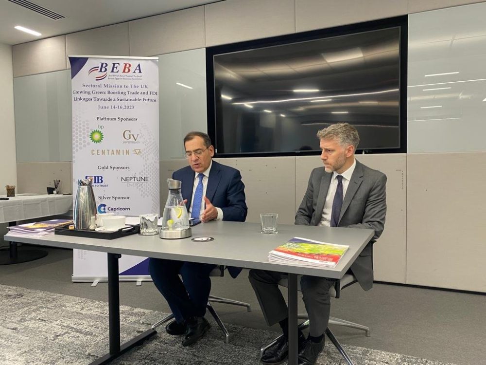 في اطار زيارته الحالية للعاصمة البريطانية لندن ، شارك المهندس طارق الملا وزير البترول والثروة المعدنية في اجتماع المائدة المستديرة لكبار مسئولي الشركات العاملة بمجال الطاقة في المملكة المتحدة والتي شارك منها ستة عشر شركة ، وذلك على هامش فعاليات البعثة التجارية للترويج للاستثمار الأخضر .