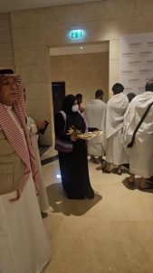 وقد استمر طوال يوم امس وصول أفواج حجاج السياحة الي اماكن اقامتهم بمكة المكرمة ، وقد فاجأت مؤسسة رواف مني المسئولة عن تقديم خدمات الطوافة وكافة الخدمات بالمشاعر المقدسة في مني وعرفات الحجاج بتجهيز استقبال خاص للحجاج حيث انتشر كبار مسئولي المؤسسة وجميع موظفيها في فنادق حجاج السياحة المصريين و استقبلوهم بالورود والبخور والاناشيد الدينية ، كما قاموا بتوزيع الحلوي والتمور علي الحجاج ومرافقتهم حتي غرفهم للاطمئنان علي تسكينهم وتقديم الخدمات اللازمة للحجاج