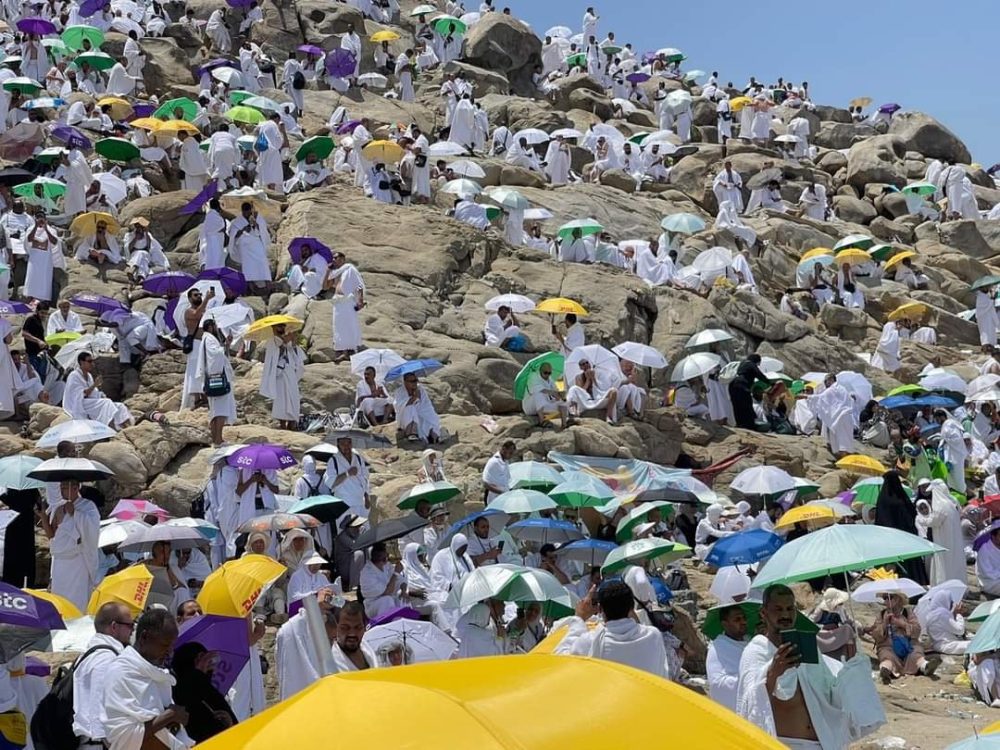 وقد اكتمل وصول الحجيج إلي صعيد عرفات مع الساعات الاولي من صباح اليوم ، هناك من قدم مباشرة الي صعيد عرفات وهناك من توجه يوم امس الاثنين الي صعيد مني لقضاء التروية بها قبل الصعود لعرفات اقتداء بسنة النبي صلي الله عليه وسلم ، ليكتمل وفد الرحمن اليوم علي صعيد عرفات ، وقد علت الحناجر بالتكبير والتهليل والتلبية ، وقد جاء يوم عرفة وسط أجواء شديدة الحرارة وزحام في شوارع عرفات وبذلت السلطات السعودية جهودا كبيرة للتسهيل علي الحجاج وتنظيم عمليات تصعيد الحجيج كما نشرت مبردات المياه وخراطيم لرش المياه بشوارع عرفات للتخفيف من حرارة الجو