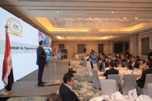 كما تحدث الوزير عما تم إنجازه وجاري العمل عليه من خلال الاستراتيجية الوطنية لتنمية السياحة في مصر، ومحاور العمل وخطط التحرك للوصول بمستهدفات الصناعة لجذب 30 سائح سنويًا بحلول عام 2028، لافتاً إلى أهمية صناعة السياحة في مصر بالنسبة للاقتصاد القومي وخاصة دورها في إنتاج وتوفير الوظائف وفرص العمل المختلفة ولا سيما في ظل وجود قطاع خاص قوي يقود هذه الصناعة.