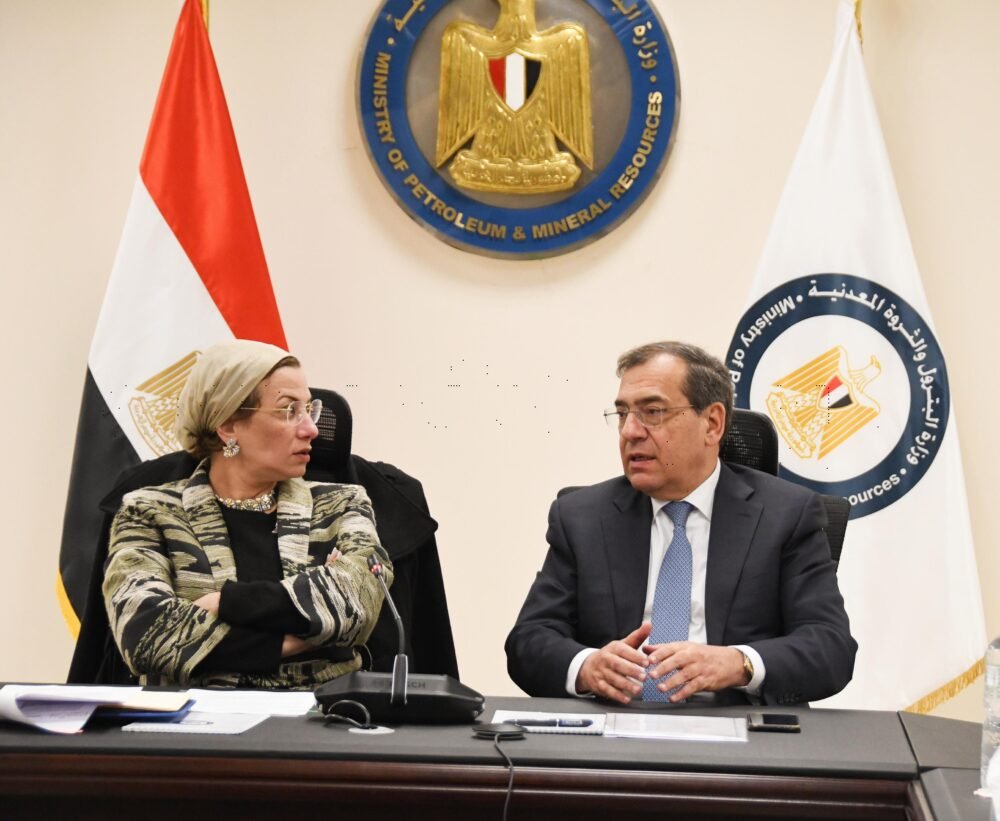 عقد المهندس طارق الملا وزير البترول والثروة المعدنية والدكتورة ياسمين فؤاد وزيرة البيئة اجتماعاً بمقر وزارة البترول والثروة المعدنية بالعاصمة الإدارية بحضور عدد من قيادات الوزارتين، لبحث تكامل جهود وزارتي البترول والبيئة في عدد من الملفات في مقدمتها التوصل لإطار عمل لتطبيق تكنولوجيا ومشروعات التقاط الكربون واستخدامه وتخزينه( CCUS) في مشروعات صناعة البترول والغاز، و التعاون في الاعداد لمؤتمر مصر للطاقة ( إيجيبس ٢٠٢٤ ) فيما يتصل بمؤتمر الاستدامة في الطاقة وخفض الانبعاثات ضمن فعاليات الحدث بهدف الخروج بمخرجات مهمة من هذا المؤتمر علي رأسها وضع خارطة طريق لالتقاط الكربون واستخدامه وتخزينه .