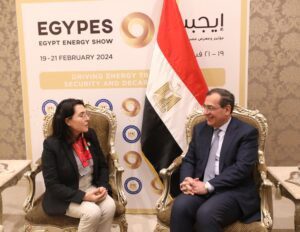 استقبل المهندس طارق الملا وزير البترول والثروة المعدنية المدير العام للمرصد المتوسطي للطاقة (OME) هدى بن جنات التى ابدت إعجابها بهذه النسخة من المؤتمر الذي شمل كافة انشطة الطاقة سواء الكربوهيدرية او الجديدة والمتجددة والهيدروجين ، واضافت اننا نسعى سويا لعمل دراسة لمعرفة الاحتمالات والامكانيات الخاصة بالطاقة المتجددة وكيفية مواجهة التحديات التي تعوق تحقيق ذلك ، وكذلك دراسة احتياجات كل دولة من الطاقة ، لافتة إلى ان مصر لديها سوق كبير فى مجالات الطاقة وإمكانية التصنيع المحلى مقارنة بعدد كثير من دول المنطقة، ويجب التركيز على استخدام احدث التكنولوجيات فى شتى مجالات الطاقة.