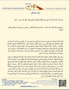 تؤكد غرفة شركات ووكالات السفر والسياحة ان شركات السياحة المصرية المنظمة لرحلات الحج لا علاقة لها بالمواطنين الذين سافروا لأداء الحج هذا العام من خلال تأشيرات الزيارة ، وأضافت الغرفة انها تتابع الأخبار المتداولة عن تلك الأعداد التي سافرت للحج بتأشيرات الزيارة الغير مسموح لها أساسا بأداء الحج طبقا للقوانين والضوابط السعودية ، وتتابع كذلك سوء الفهم لدى البعض للربط بين هذه الحالات وشركات السياحة للإيحاء بدون علم أو من خلال معلومات مغلوطة أن شركات السياحة هي المسؤولة عن تلك الرحلات لتلك الأعداد أو أن الشركات مسؤولة عن سفرهم وأدائهم للحج وهو ما يخالف الحقيقة تماما