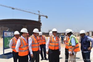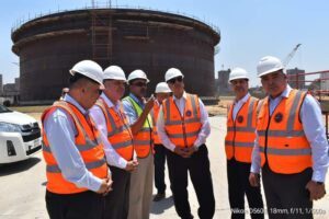كما تفقد رئيس الهيئة ومرافقوه تقدم الاعمال بمشروع مستودعات التخزين الجديدة وكذلك اعمال مشروع أبراج التبريد ، بالإضافة الى متابعة تنفيذ مشروع احلال وتجديد شبكة الاطفاء الرئيسية للمنطقة الجغرافية بمسطرد فى ضوء توصيات اللجنة البترولية الجغرافية بالمنطقة.
