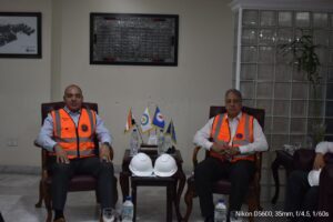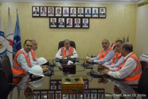 استمع رئيس الهيئة ومرافقوه لعرض توضيحى من المهندس وائـــل رزق رئيس الشركة حول آليات عمل وتشعيل أجهزة التقطير والمعالجة ومجمع إنتاج البنزين ومعدلات انتاج المازوت وكميات التغذية اللازمة لتشغيل الشركة المصرية للتكرير ERC .