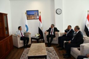 التقى المهندس كريم بدوى وزير البترول والثروة المعدنية بمدينة العلمين الجديدة ، وليام لين نائب الرئيس التنفيذى لشركة بريتش بتروليوم ( بى بى ) العالمية للغاز والطاقة منخفضة الكربون والوفد المرافق .