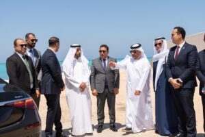 قام الشيخ محمد سعيد الظنحاني ، مدير الديوان الأميري بإمارة الفجيرة بدولة الإمارات والوفد المرافق الذى ضم المهندس حسام العمرى رئيس شركة بروج للاستثمارات البترولية وسهيل المزروعى عضو مجلس إدارة الشركة والمهندس هانى على المدير التنفيذي لميناء الفجيرة واحمد عادل المستشار القانوني بجولة تفقدية لمنطقة ميناء الحمراء بدأها بزيارة منطقة مستودعات الزيت الخام التى تخدم تأمين حركة تداول واستقبال الزيت الخام بمنطقة الصحراء الغربية ، بالإضافة إلى جولة فى التوسعات الشمالية تفقد خلالها الأعمال الجارية بالمنطقة الشمالية والتى تهدف إلى زيادة السعة التخزينية لتسهيلات ميناء الحمراء بإضافة ٤ مستودعات تخزين جديدة للوصول لسعة تخزينية إجمالية ٥.٣ مليون برميل .