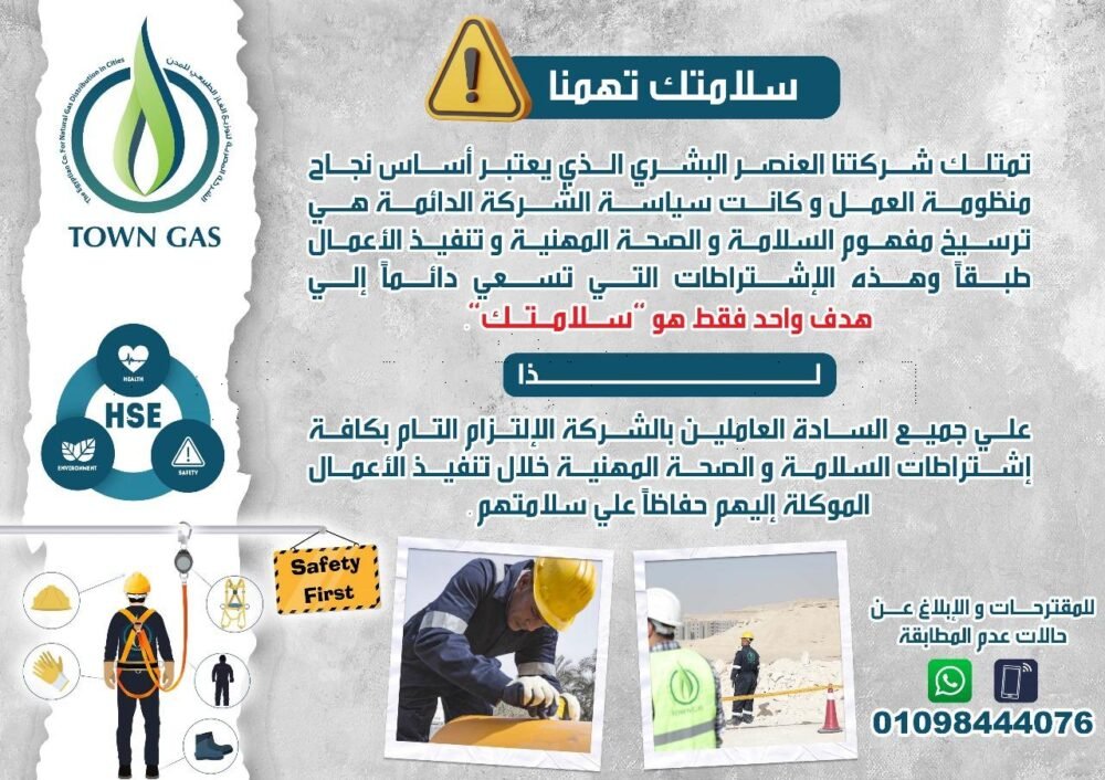 نظمت شركة تاون جاس فاعليات يوم السلامة بجميع مناطق عمل الشركة تحت شعار “سلامتك تهمنا”،