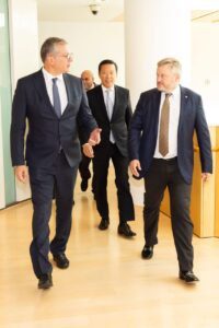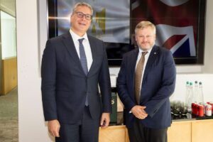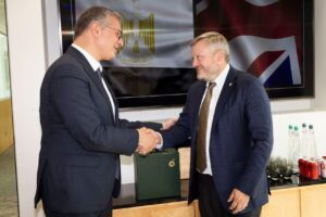 عقد المهندس كريم بدوي وزير البترول والثروة المعدنية اجتماع مع موراي اشكلينوس – الرئيس التنفيذي لشركة بي بي بمقر الشركة بالمملكة المتحدة، بحضور وليام لين نائب الرئيس التنفيذى لمشروعات الغاز والطاقة منخفضة الكربون والمهندس نادر زكي الرئيس الإقليمى لشركة بي بي للشرق الأوسط وشمال أفريقيا، والمهندس معتز عاطف وكيل الوزارة للمكتب الفني والمتحدث الرسمي للوزارة.