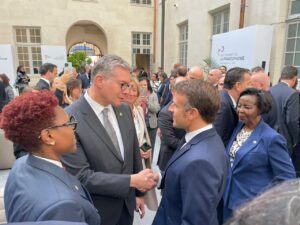 وقد قام الرئيس الفرنسي ماكرون والسكرتير العام للمنظمة الدولية للفرانكفونية السيدة/ لويز موشيكيوابو خلال كلمة كل منهما في الجلسة الافتتاحية بتوجيه عميق الشكر والتقدير للسيد الرئيس عبد الفتاح السيسي علي إنتهاء السلطات المصرية من إنشاء مشروع المقر الجديد لجامعة سنجور لخدمة التنمية في أفريقيا في مدينة برج العرب، حيث تُعد الجامعة أحد الاجهزة الرئيسية للمنظمة، وذلك كإسهام قَيًم من قبل مصر لدعم جهود التنمية المستدامة في القارة.