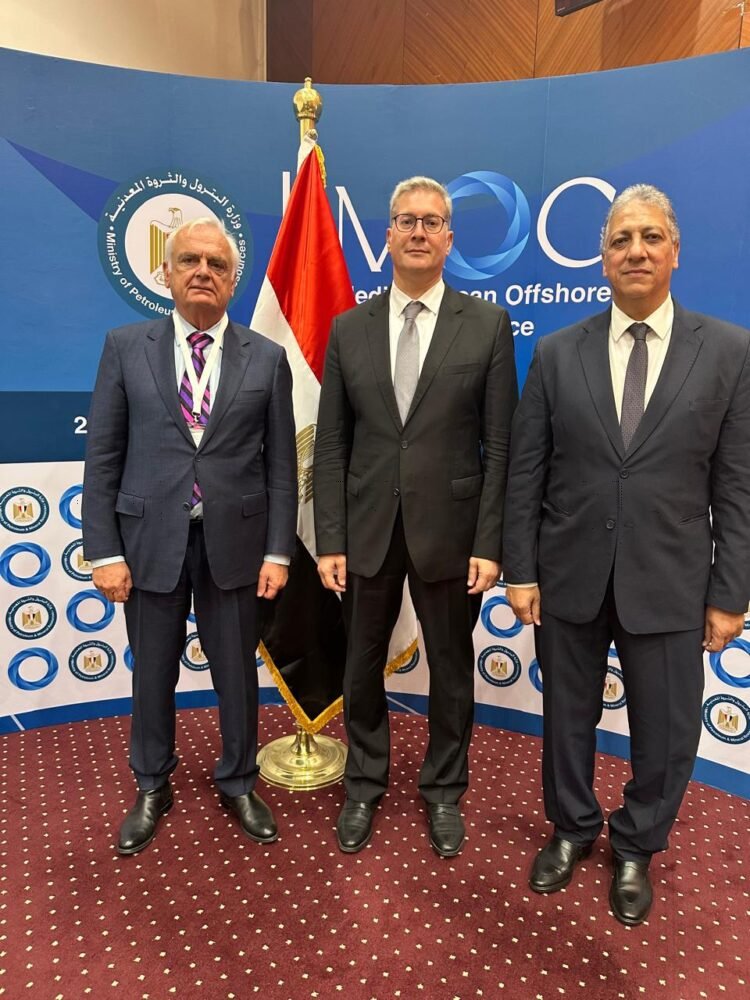 التقي المهندس كريم بدوي وزير البترول والثروة المعدنية بارسطوتيلس إيفاليوتيس أمين عام وزارة الطاقة اليونانية علي هامش مؤتمر حوض البحر الأبيض المتوسط MOC 2024 المنعقد حالياً في مدينة الإسكندرية ، وذلك بحضور الجيولوجي علاء البطل وكيل أول الوزارة والمشرف على كفاءة الطاقة والمناخ و المهندس يس محمد العضو المنتدب التنفيذي للشركة المصرية القابضة للغازات الطبيعية إيجاس و المهندس صلاح عبدالكريم الرئيس التنفيذي لهيئة البترول والمهندس معتز عاطف وكيل الوزارة للمكتب الفني والمتحدث الرسمي للوزارة .