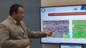 شارك المهندس محمد صبحي الشرقاوي مدير عام مساعد بإدارة الاستكشاف والتطوير في اليوم الأول بمناقشة ورقة بحثية بعنوان “الكشف عن رمال خزان الحقب القديمة العميق باستخدام السمات السيزمية لتحديد بصمة توزيعها على البيانات السيزمية عريضة النطاق الجديدة، دراسة حالة من حقل غاز آي أو، حوض شوشان، شمال الصحراء الغربية، مصر”. وشارك المهندس يسري أحمد عبد الحميد – مدير عام مساعد بإدارة الاستكشاف والتطوير بمناقشة ورقة بحثية بعنوان “قوة البيانات السيزمية في تتبع الدولوميت بخزان العلمين، حقل خبري، حوض شوشان، شمال الصحراء الغربية، مصر”. كما شارك في فعاليات اليوم الأول المهندس أحمد أيمن الحديدي – رئيس قسم بإدارة العمليات بمناقشة ورقة بحثية بعنوان “التعلم الآلي في صناعة البترول – عمليات تنظيف البئر بعد التحفيز الهيدروليكي بمساعدة التعلم الآلي للتنبؤ بالضغط عند قاع البئر”.