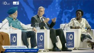 شارك المهندس كريم بدوي كمتحدث رئيسي في الجلسة الوزارية الافتتاحية لمؤتمر أبو ظبي الدولي للبترول (اديبك 2024) تحت عنوان “القادة العالميون الجدد والتحول الطاقي” والتي شارك فيها كل من سهيل المزروعي، وزير الطاقة والبنية التحتية الإماراتي، شري هارديب سينغ بوري وزير البترول والغاز الطبيعي بدولة الهند، روث نانكابيروا سينتامو، وزيرة الطاقة وتنمية المعادن بدولة أوغندا.