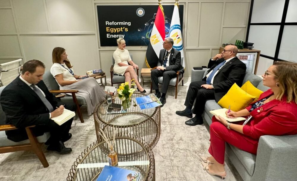 عقد المهندس كريم بدوي، وزير البترول والثروة المعدنية، جلسة مباحثات مع أنجيلا ويلكنسون، الأمين العام والرئيس التنفيذي لمجلس الطاقة العالمي ، بحضور المهندس معتز عاطف وكيل الوزارة للمكتب الفني والمتحدث الرسمي للوزارة.
