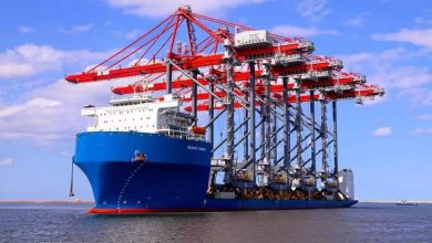 استقبال أوناش الرصيف العملاقة STSالخاصة بتشغيل محطة تحيا مصر متعددة الأغراض بميناء الإسكندرية