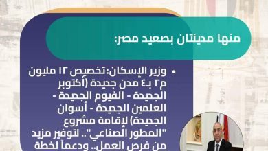 وزير الإسكان: تخصيص 12 مليون م2 بـ4 مدن جديدة لإقامة مشروع “المطور الصناعى” لتوفير فرص العمل