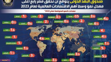 بالإنفوجراف… صندوق النقد الدولي يتوقع أن تحقق مصر رابع أعلى معدل نمو وسط أهم الاقتصادات العالمية لعام 2023