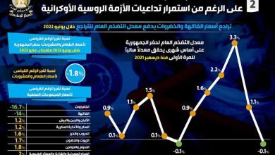 بالإنفوجراف… معدل التضخم العام ينخفض للمرة الأولى منذ 6 أشهر على الرغم من استمرار تداعيات الأزمة الروسية الأوكرانية