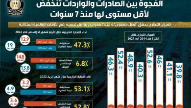 بالإنفوجراف…الفجوة بين الصادرات والواردات تنخفض لأقل مستوى لها منذ 7 سنوات