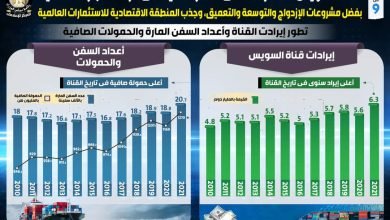 بالإنفوجراف…بعد تحقيق عوائد ومؤشرات غير مسبوقة في تاريخها : قناة السويس الممر الملاحي الأكثر أهمية في حركة التجارة العالمية بفضل مشروعات الازدواج والتوسعة والتعميق وجذب المنطقة الاقتصادية للاستثمارات