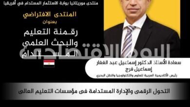 كتب _ صديق العيسوى شارك الدكتور إسماعيل عبد الغفار إسماعيل فرج رئيس الأكاديمية العربية للعلوم والتكنولوجيا والنقل البحري، فى منتدى…
