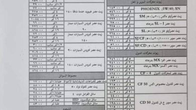 رفعت شركة مصر للبترول ، أسعار الزيوت بنسبة تصل إلى 10 %، وفقا لنشرة أسعار الشركة، وذلك من صباح اليوم…