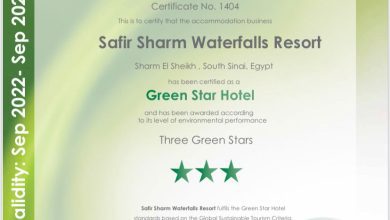 منتجع سفير شرم الشلالات يحصل على شهادة النجمة الخضراء
