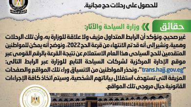 ” السياحة والآثار ” : تتفى تداول رابط إلكتروني يدعو المواطنين لتسجيل بياناتهم للحصول على رحلات حج مجانية..شائعة