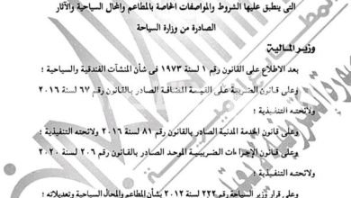 قرر الدكتور محمد معيط وزير المالية، تشكيل لجنة عليا مشتركة مع وزارة السياحة لإجراء حصر مبدئي للمطاعم والمحال التي ينطبق…