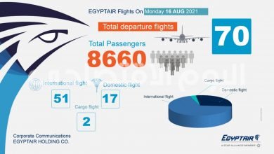 تسير مصرللطيران غدا الأثنين ١٦ أغسطس ٧٠ رحلة جوية بمعدل ٥١ رحلة دولية إلى كل من تورنتو، دبي، جوبا،…