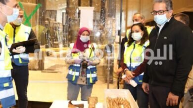 وزير السياحة والآثار يشهد وضع أوائل القطع من كنوز الملك توت عنخ آمون بفتارين العرض بالمتحف المصري الكبير