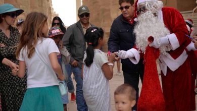 “بابا نويل” يوزع الهدايا الفرعونية والورود على السائحين بمعبد الكرنك احتفالاً بالكريسماس